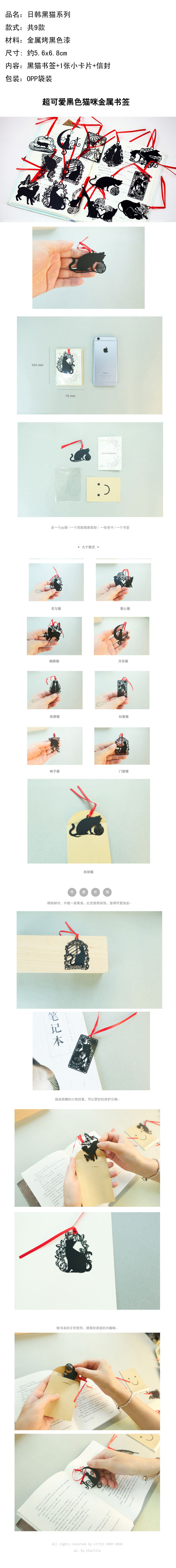 日韩文具黑猫系列金属镂空书签创意挂绳贺卡信封可爱猫咪书签礼品