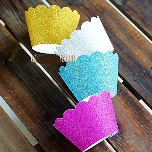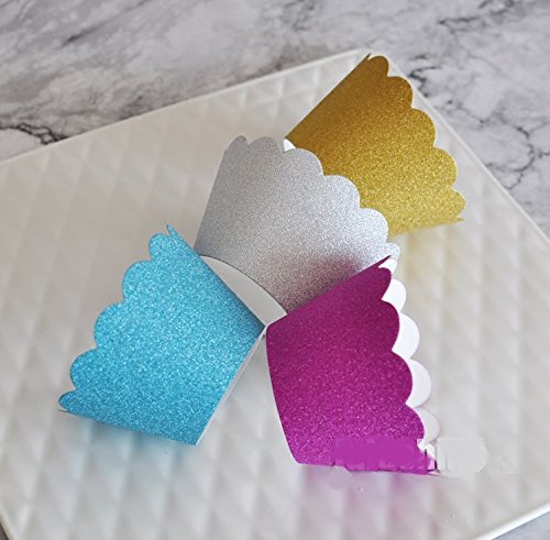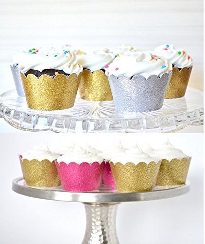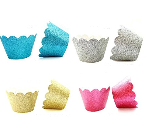 Astra Gourmet Metallic Glitter Cupcake Wrappers/Liners Standard Size for Wedding Parties Pack of 48(Gold/Silver/Blue/Red)
