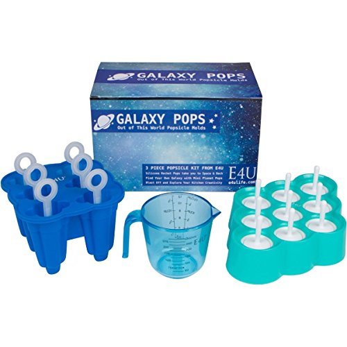 Studio : E4U Publisher : E4U Product Description The Galaxy is Yours! Jump in your Rocket and Explore the Planets of your Dreams! Galaxy Pops are the Out of this World Popsicle Molds here to save you from the Mid Summer Slump. 3 PIECE POPSICLE KIT FROM E4U Silicone Rocket Pops take you to Space and Back. Find Your Own Galaxy with Mini Planet Pops Are you ready for an adventure? Blast Off and Explore Your Creativity in the Kitchen. Long gone are boring store bought ice pops full out corn syrup and red dye #5. Welcome to the new age where you control what goes into your body, not an executive in a suit. Combine your favorite cut up fruits with juice from the fresh farm market staples and top off with good for the belly yogurt and kefir. The result is gourmet smoothie pops guaranteed to make even Martha Stewart stand in applause and adoration. ?? HOW DO WE DO IT? ?? This is the Only Ice Pop Kit that includes everything you need to make Ice Cream Pops. Mini Planet Pops: Crafts 9 Mini Bite Sized Pops at a time, just the right size for an after dinner snack. Holds approx. 3 - 4 Ounces of Fluid. Good for so much more than just Popsicles, also great for Jello, Chocolate, and for the Adults - Poptales, popsicles with at added punch. Silicone Rocket Pops: Go to the Moon and Back - Let your imagination Run Wild. Kid approved Silicone Ice Mold makes 6 - 8" tall Popsicles. Don't get crooked, most molds allow the stick to wiggle about making the frozen result a stick the doesn't stand straight. We crafted this kit for the stick to lock into position, perfect pops every time. Every set comes with a Mess Free Measuring cup. Every popsicle measured and poured to its exact proportion, every time. Take back your summer and your Freezer. GALAXY POPS ARE HERE TO SAVE THE DAY 0 |
