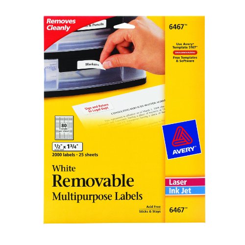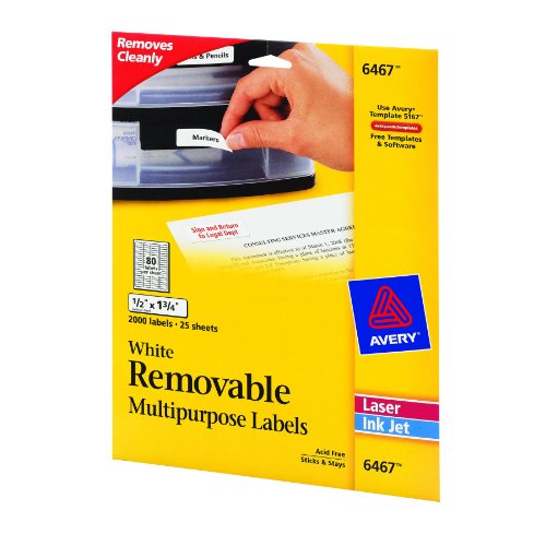 Avery Self-Adhesive White Removable Laser Id Labels, 1/2" x 1-3/4, 2000 per Pack (6467)