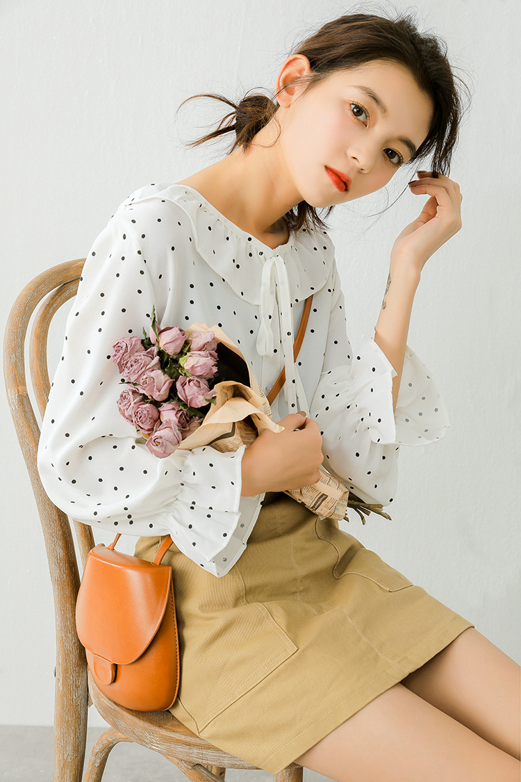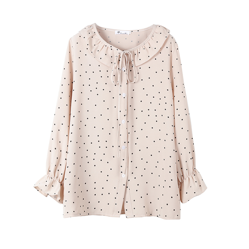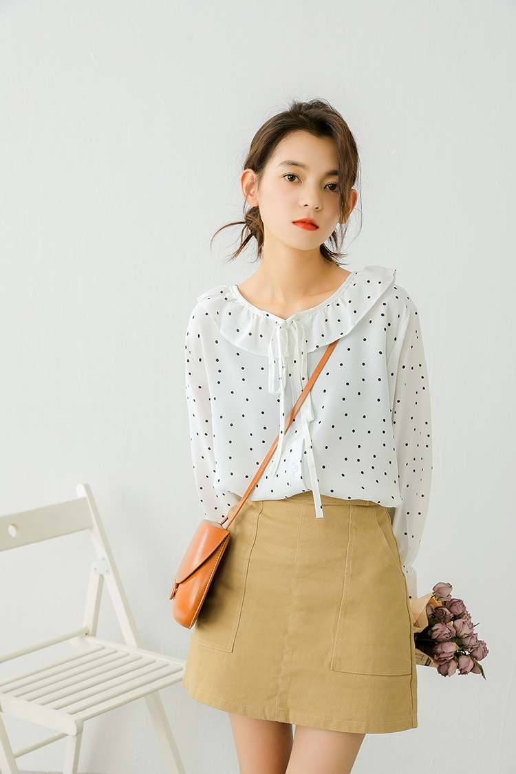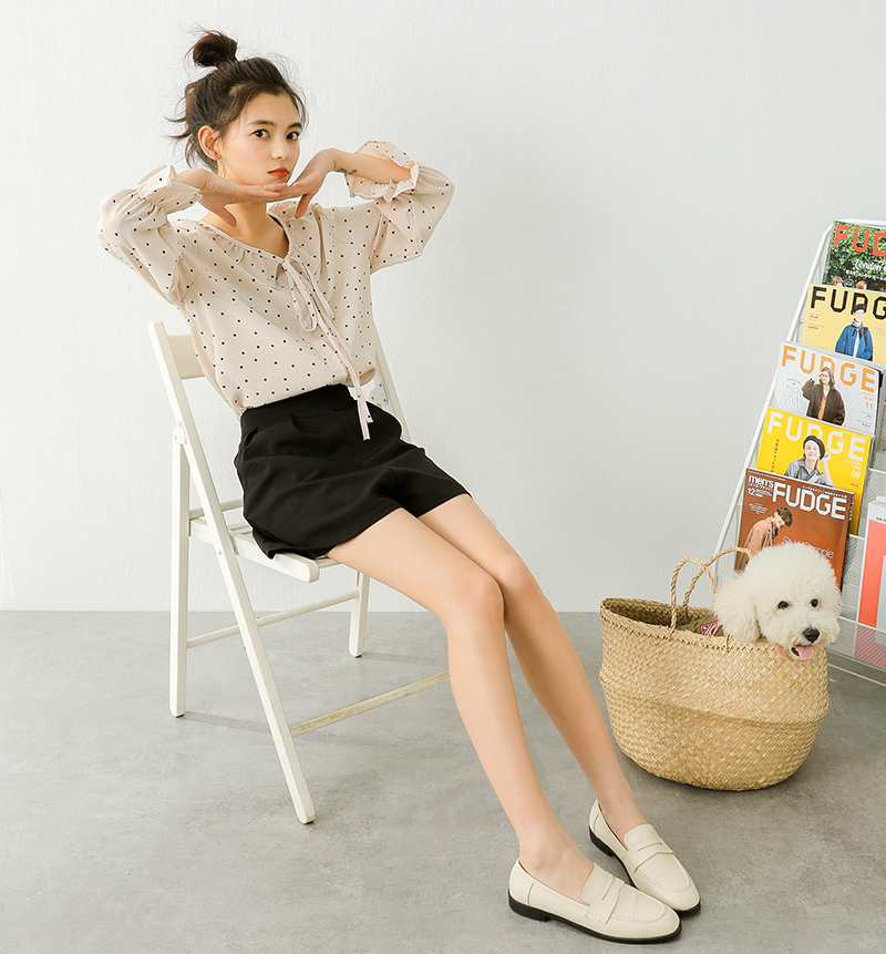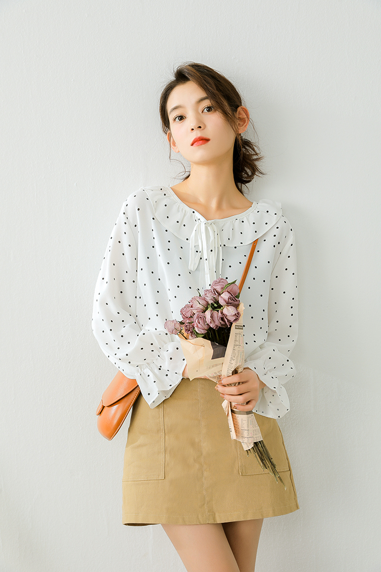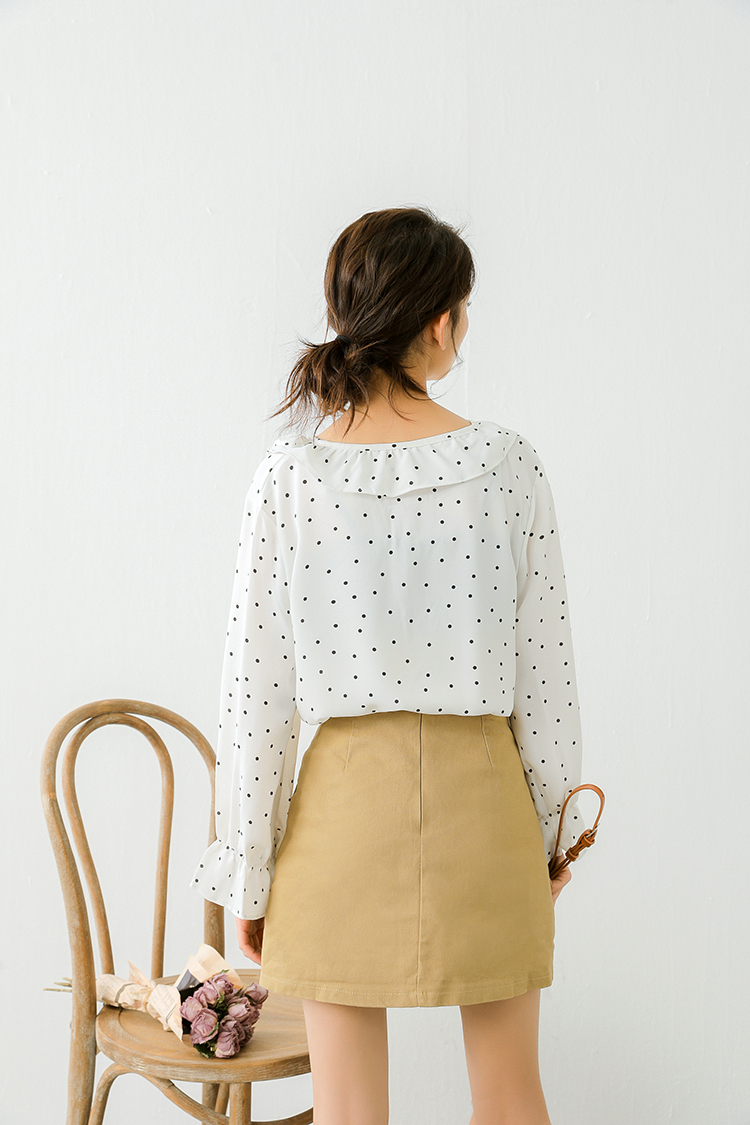 小さめのドット柄が甘くなりすぎず、ボトムス次第でフェミニンにもカジュアルにも合う1枚♪