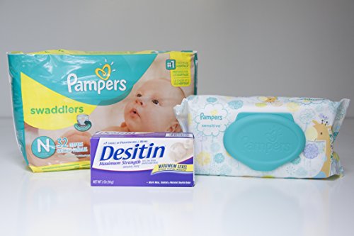 Diapering Bundle - Includes Pampers Swaddlers Size Newborn, Pampers Sensitive Wipes and Desitin Diaper Rash Cream – Perfect Diaper Changing...