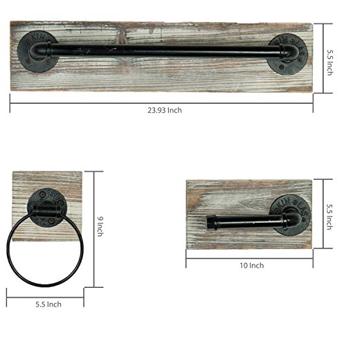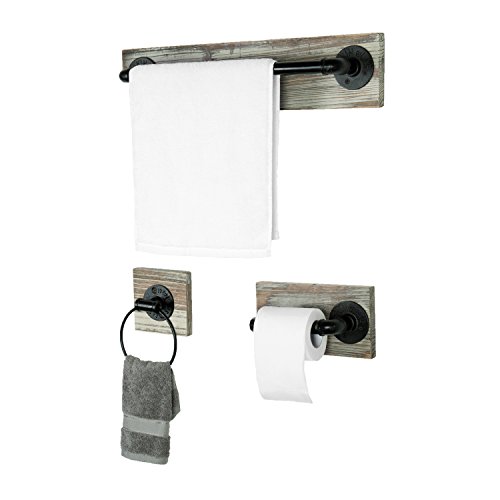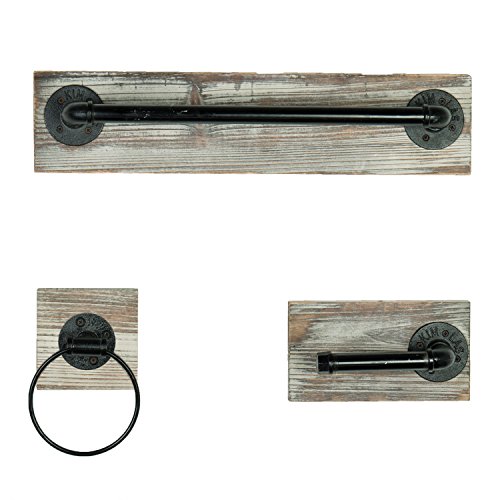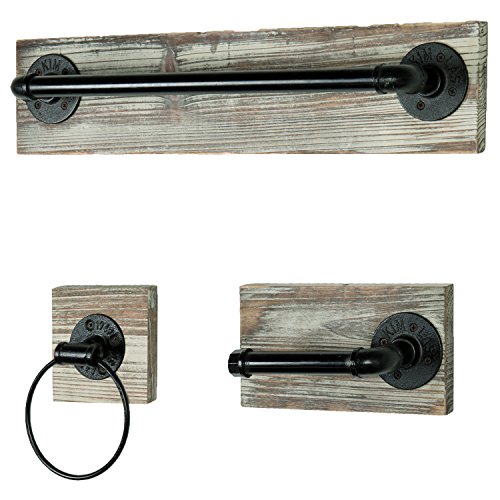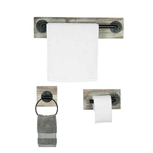 Wall Mounted Industrial Rustic 3 pc Bathroom Fixture with Towel Bar, Towel Ring & Tissue Holder