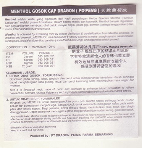 Dragon Po'Peng Menthol Gosok (Cone) HSP, 8 Gram