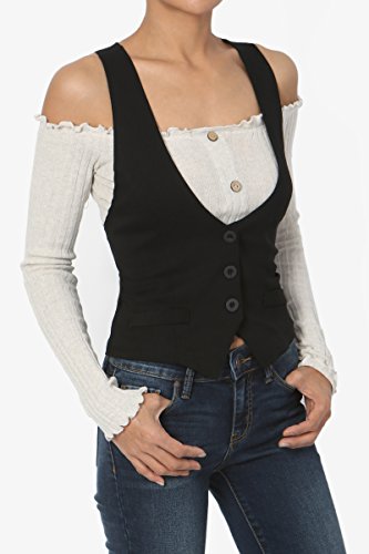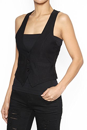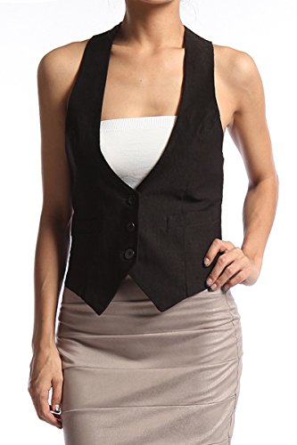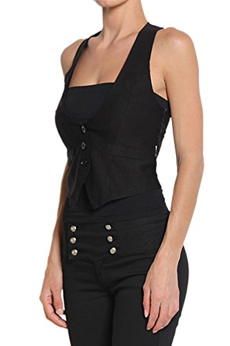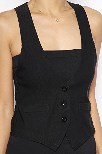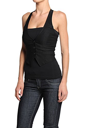 Binding : Apparel Product Description "TheMogan Sleek Adjustable Back Strap RACERBACK VEST WAISTCOAT Basic Slim Suiting. Go for a business-chic look in this woven black vest featuring Three-button front closure. Also includes faux-welt pockets detail and back with martingale. Sleeveless Fitted Stretch woven 67% Nylon, 30% Rayon, 3% Spandex Hand wash cold, Made in USA Sizes Run Small, Please Consider sizing up Model size : 5'3"" height, 95 pound, 34"" bust, 24"" waist, 34"" hip, and is wearing a size US Small. Layer shown not included." Measurement Chart 1 |