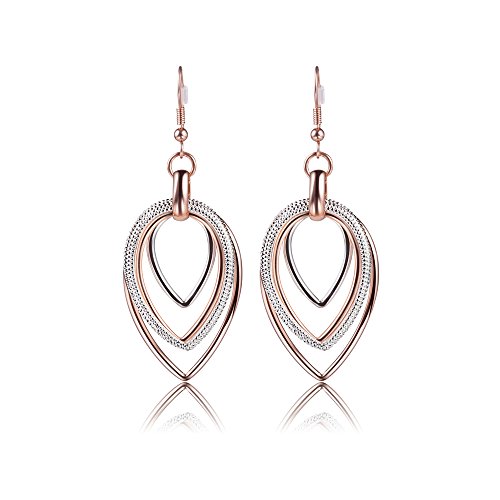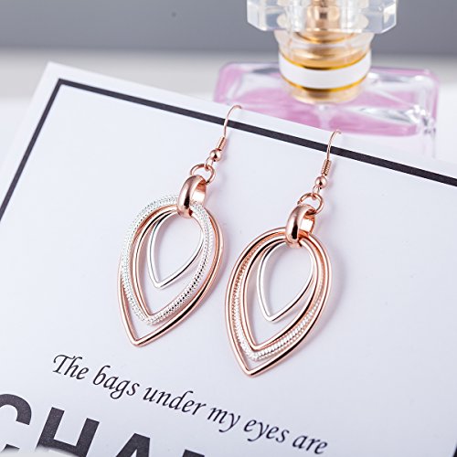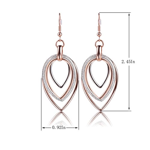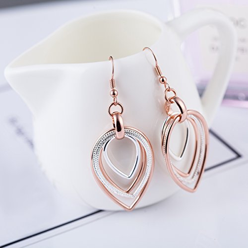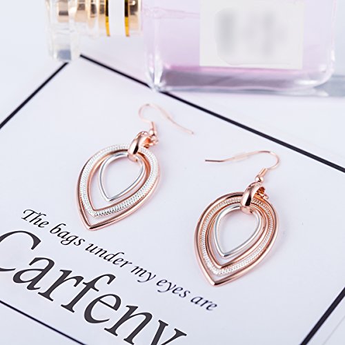 -. Title : Carfeny Rose Gold and Silver Two Tone Dangle Earrings Multilayer Heart Shaped Teardrop Earrings Hypoallergenic for Women Elegant Jewelry