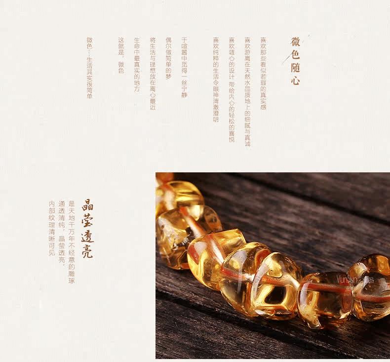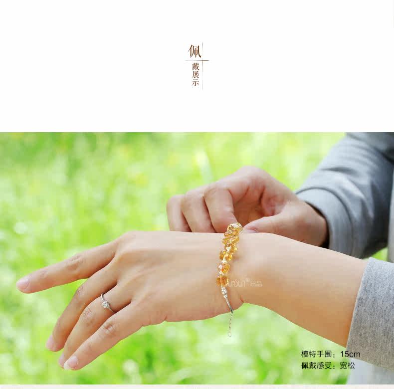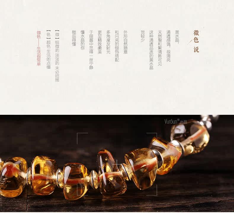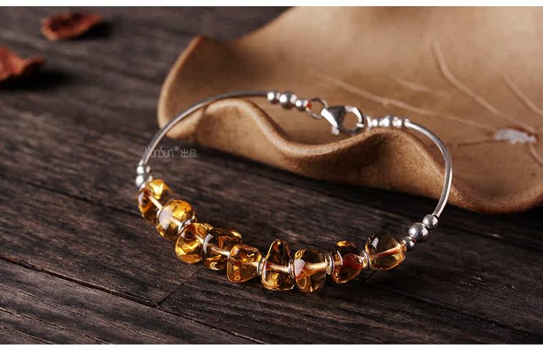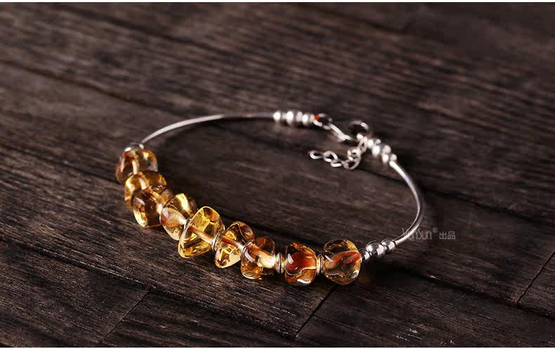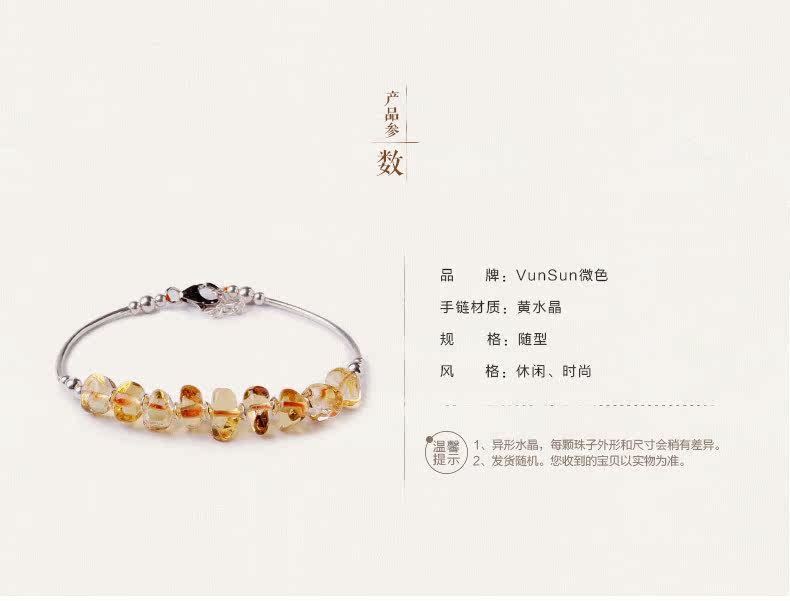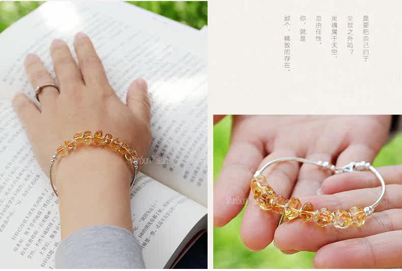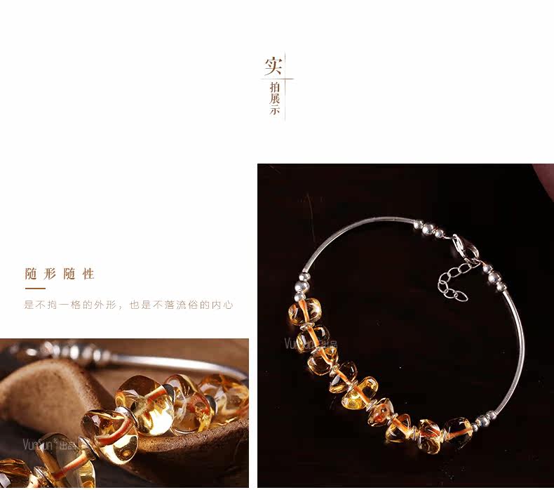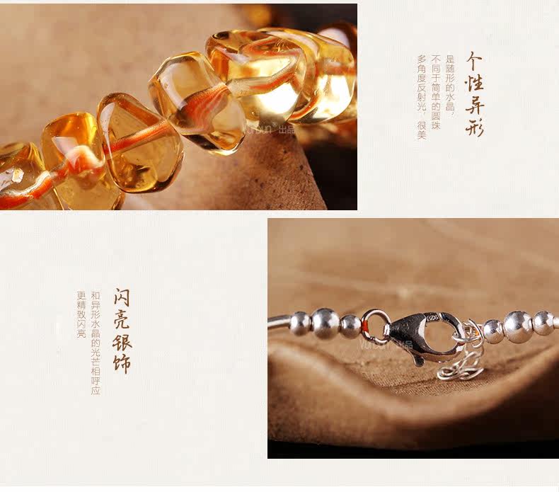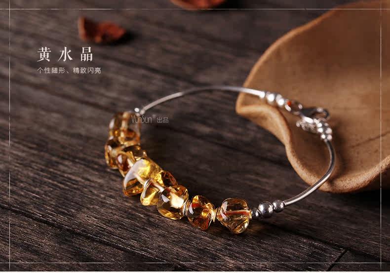 天然黄水晶手链女 异形随形黄晶手串 单圈简约 S925银饰品