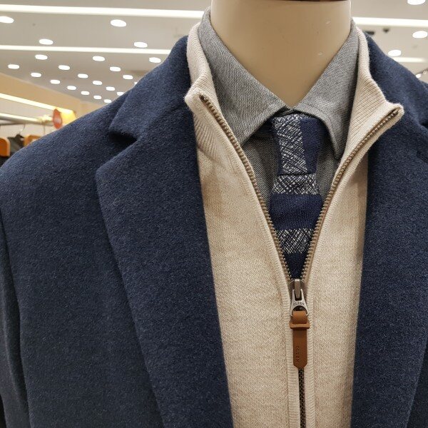 캐시미어 블렌디드 상품으로 등판안감에 2온스의패딩충전재가 고주파 퀼팅방법으로 누벼져 있어 보온성 있게 제안