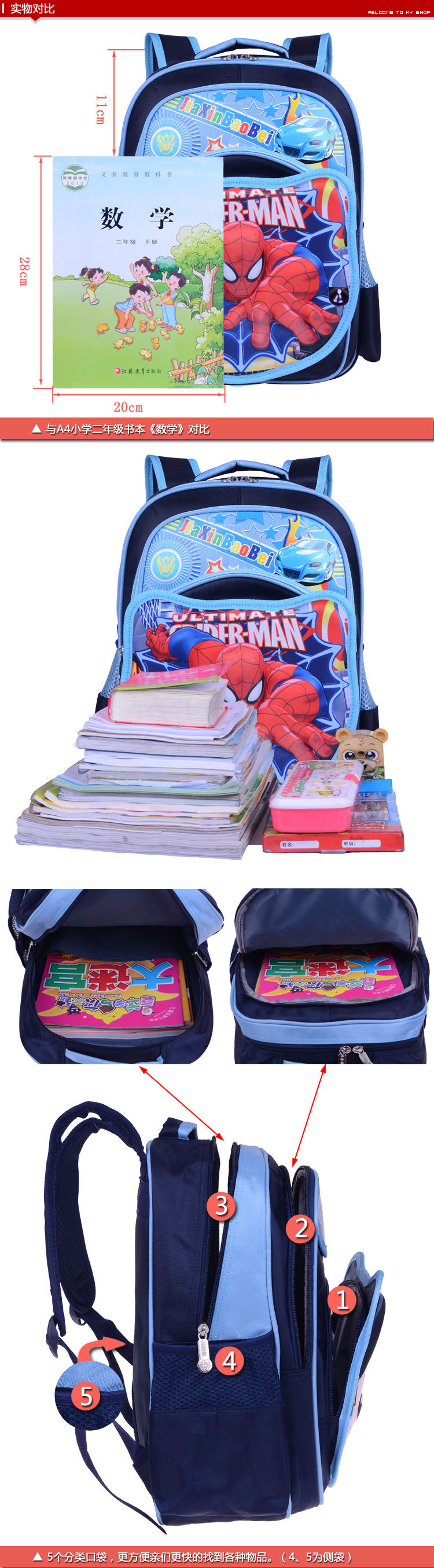 Structure: The main bag, front pocket, inner compartment bags, side mesh bag