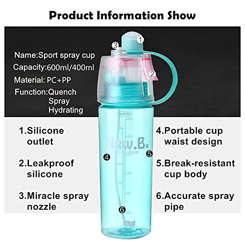 Product features: leak proof design, prevent the water out; spray mouth design, gently press, can be emitting refreshing moisturizing spray, make skin moist; portable handle design,easy to carry; graduation design, Intuitively see capacity on the cup body, timely grasp how much watery.