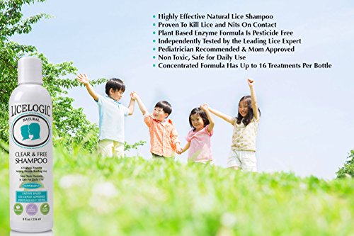 NON TOXIC AND SAFE - Mom approved and pediatrician recommended for children over the age of two, this non-toxic lice treatment shampoo contains no pesticides and is gentle enough for daily use by the whole family. LiceLogic Clear & Free Shampoo is plant based and contains our powerful proprietary enzyme blend. which is proven to kill lice and nits on contact.
