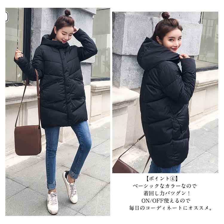 | 防寒着として重宝するロングコート♪しっかりとした厚みのある中綿コートは保温性◎大きめフードの付いいているので後ろ姿もオシャレ。重ね着の上からでも気軽に羽織って頂けます。 | |