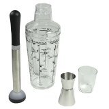 -. Feature : 3 piece cocktail set / Includes acrylic shaker, muddler and jigger / Recipes P.R.Inted on shaker / Hand wash only / Great housewarming or hostess gift