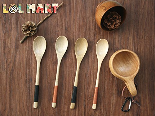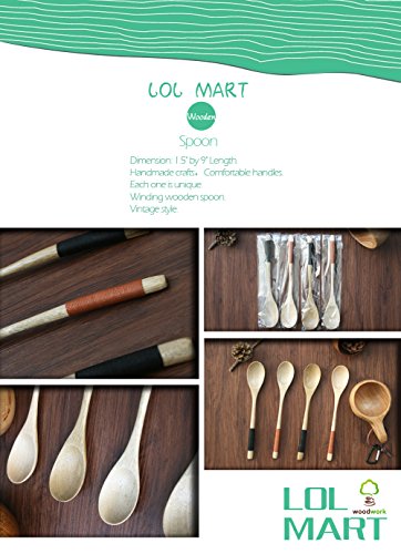 4pcs Good Grips Handmade Natural Wooden Soup Cooking Spoons,material of Nanmu,9in
