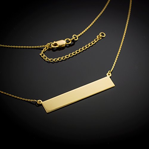 -. Binding : Jewelry -. Brand : Trendy Necklaces -. Department : womens -. Feature : contemporary, designer-inspired fine necklace statement jewelry featuring a straight horizontal customizable bar pendant suspended on either ends of its delicate yet durable genuine 14k gold chain / exquisitely handcrafted with solid 14 karat yellow gold in perfect polished finish / comes with free special gift packaging and free customization (for your choice of customized engraving, click on "Customize Now" on the upper-right hand side of the product page) / made in the USA yet offered at factory direct jewelry P.R.Ice / ships from the manufacturer directly to the customers (engraved products are nonreturnable) -. Label : Claddagh Gold -. Manufacturer : Claddagh Gold -. Model : CM875 -. MPN : CM875 -. PartNumber : CM875 -. ProductGroup : Jewelry -. ProductTypeName : FASHIONNECKLACEBRACELETANKLET -. Publisher : Claddagh Gold -. Studio : Claddagh Gold -. Title : High Polish 14k Yellow Gold Personalized Custom Engravable Bar Necklace
