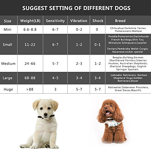 MUST READ BEFORE USE! -If the collar can't be turned on when unbox, in fact that it was run out of power, please charge it. It is forbidden to charge the product with an adapter that exceeds 1A . The digital screen displays the battery power when waking up or no operation. -Don't charge with the charger which output more than 5V, please use original charger. -Never connect a lead to the electronic collar. it will cause excessive pressure on the contacts. Please adjust the collar to a apposite size, it is necessary that the prongs touch dogs' skin, and too tight may cause skin damage. -Do not wear it on your dogs for a long time. It's better to wear it only in training. Avoid leaving the collar on the dog for more than 12 hours per day. A collar worn for too long or made too tight on the pet's neck may cause skin damage. -Never tie dog rope on the collar, it will cause excessive pressure to dogs' throat. -Please clean the touch area of dog and prongs with a damp fabric. -Examine the contact area daily for signs of a rash or a sore,If a rash or sore is found and the condition persists beyond 48 hours, see your veterinaria. - The bark collars are training aids, not punishment. Don't let your dog sleep with it, it would be triggered when he/she yawns. -Please be on the alert: if your dogs keeping barking, an emergency needs to be dealt with. Package Includes: 1 x No bark receiver 1 x Adjustable Nylon Collar 1 x Test Light1 x USB Link 1x instruction 0 |