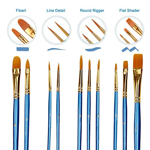 - ❤ TEN VARIOUS SIZES OF PAINTBRUSHES: This acrylic artist paint brush set includes 10 different sizes: 5/8 8 6 4 5 3 2 2 1 2/0, which will meet most of your creative painting needs, from thick strokes to fine detailing. The length is available from 17.5 cm to 19.5 cm (6.9 to 7.7 inches).