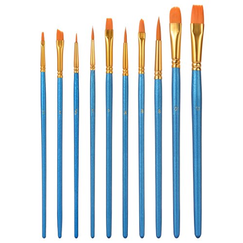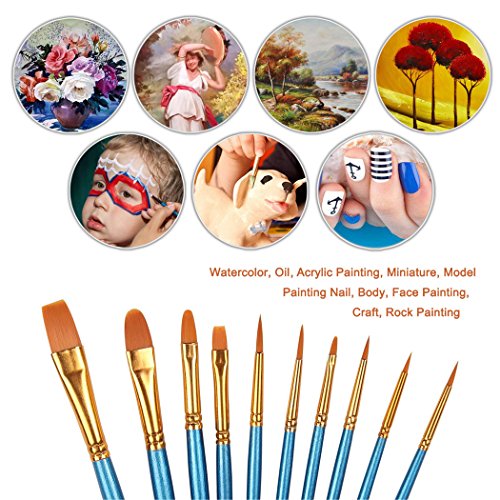 Xubox Pointed-Round Paintbrush Set, 10 Pieces Round Pointed Tip Nylon Hair Artist Detail Paint Brushes Set for Fine Detailing & Art Painting, Acrylic Watercolor Oil, Nail Art, Miniature Painting, Blue