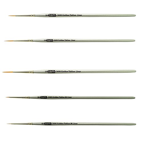 ZEM BRUSH Golden Taklon Mini Detail Brush Set Liner 20/0, Mini Liners 20/0, 10/0, Details 10/0, 5/0