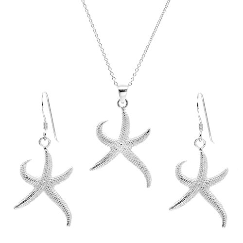 -. Title : Silverly Women's .925 Sterling Silver Polished Starfish Dangle Earrings Pendant Necklace Set, 46 cm