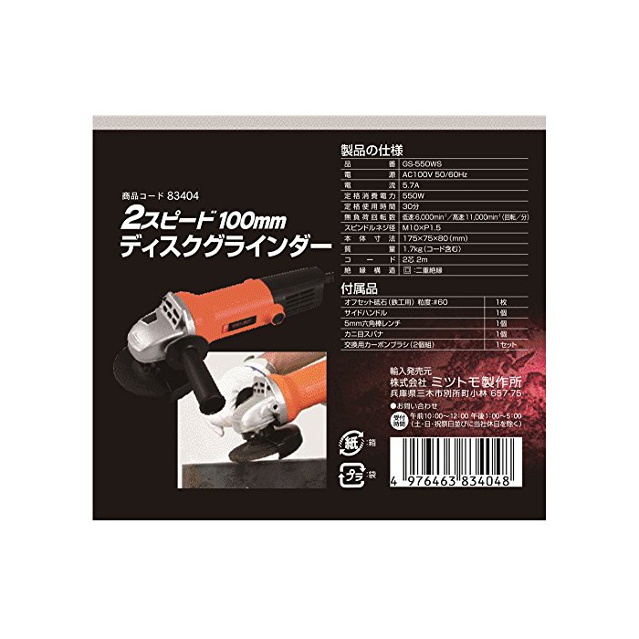 원본상품명:RELIEF 100mm二段速ディスクグラインダ GS-550WS