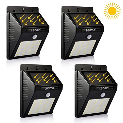 LED Solar Lights Outdoor(4 Pack),LEDMO Motion Sensor Lights Wireless Waterproof Security Outdoor Solar Powered Lighting With Motion Activated Auto On/Off For Garden,Yard,Patio,Deck