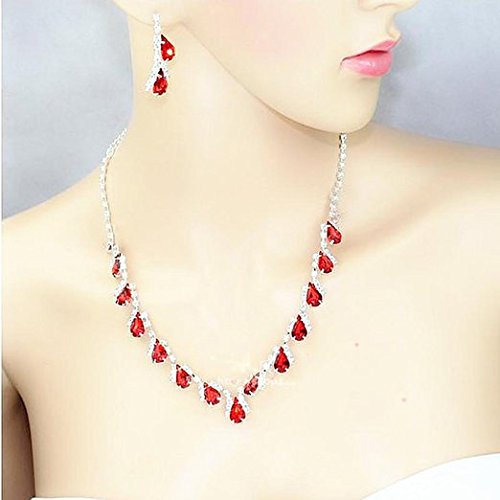 -. Binding : Jewelry -. Brand : KARMO -. Department : womens -. Feature : Material: Alloy, rhinestone / Perfect set for any bride or bridesmaid ; Coordinates with any color wedding gown or formal attire. / Occasion: wedding, engagements,prom, every occasion you want to be more charming. / Package Included: 1 x Necklace; 1 x Pair of earrings / All Karmo Jewelry comes with 30-day money back guarantee. -. Label : kARMO -. Manufacturer : kARMO -. ProductGroup : Jewelry -. ProductTypeName : FASHIONNECKLACEBRACELETANKLET -. Publisher : kARMO -. Studio : kARMO -. Title : KARMO Women's Ruby Teardrop Rhinestone Crystal Necklace Earring Jewelry Sets for Wedding Birthday Anniversary Prom Party(Red)
