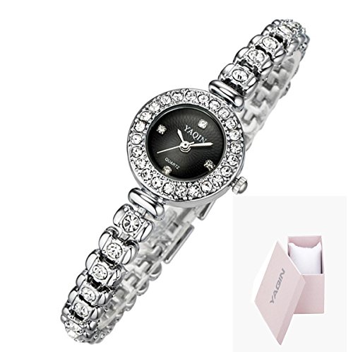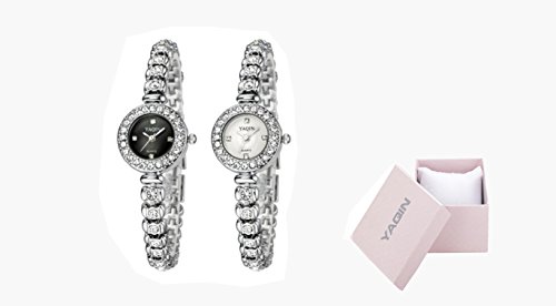 yaqin 손목시계 레이디스 우아하고 세련된 포름 컬러 화이트 블랙 (블랙)