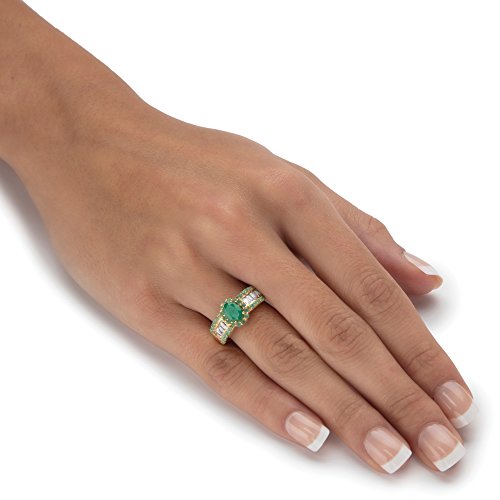 -. Title : 14K Yellow Gold over Sterling Silver Oval Cut Genuine Emerald and White Topaz Halo Ring