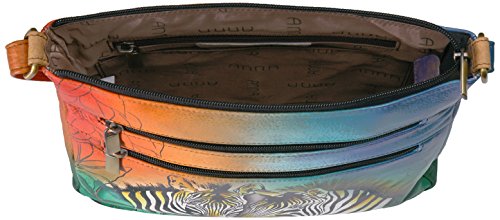 Studio : Anna By Anuschka Publisher : Anna By Anuschka Binding : Apparel Product Description Top zip entry to main compartment. Inside zippered wall pocket, one open wall pocket and two multipurpose pockets. Front two full length zippered pockets. Rear all round zippered organizer pocket with one zippered pocket and one open wall pocket. Adjustable shoulder strap with maximum drop of 26”. 10” x 9.5” x 2.25” 0