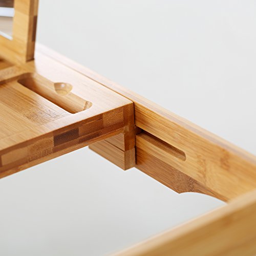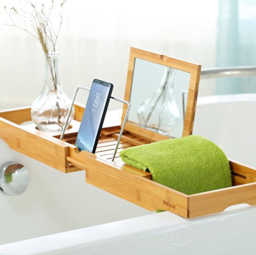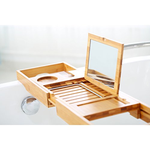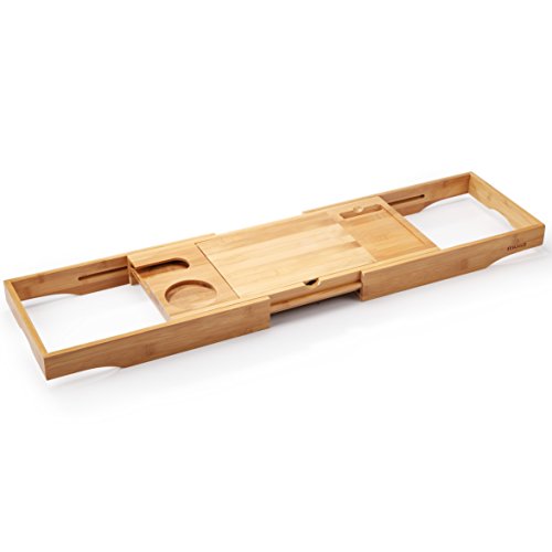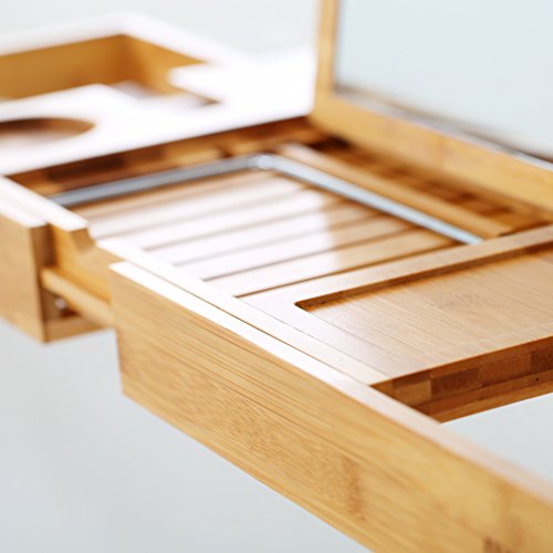 Fit for bathtub of various size, the tray measures 27.6" X 8.7" X 1.9", extends up to 41"