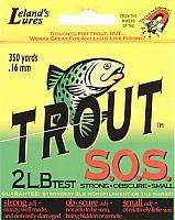 -. Binding : Sports -. Brand : Leland Lures -. Color : 0 -. EAN : 0654296876698 -. Feature : S.O.S. is a copolymer line that is soft and easy to cast, it has excellent stretch and abrasion characteristics that make it the perfect line for light-line fishing. / It is hard to be a successful fisherman without using the right line. / The problem is - it is difficult to find a light line with the right color and the right strength. / Using the proper line will make a difference in the amount of fish you catch. S.O.S. lines are the strongest lines on the market when comparring lines of similar diameters. -. Label : Leland Lures -. Manufacturer : Leland Lures -. Model : 87668 -. MPN : TSOS2 -. PackageQuantity : 1 -. PartNumber : TSOS2 -. ProductGroup : Sports -. ProductTypeName : SPORTING_GOODS -. Publisher : Leland Lures -. ReleaseDate : 2012-06-01 -. Size : 2 lb -. Studio : Leland Lures -. Title : Trout S.O.S. Line Spool (2-Pound Test), 350-Yard -. UPC : 654296876698 -. Warranty : One Year Warranty