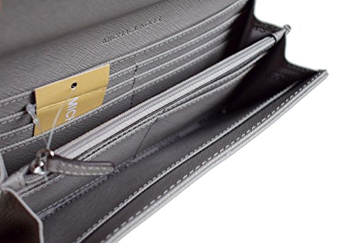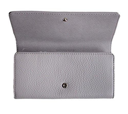 -. Binding : Apparel -. Brand : -. Color : pearl grey -. Department : womens -. EAN : 0887042734281 -. Feature : Pebbled leather with SILVER tone hardware. / Fold-over flap with magnetic closure, polished logo plate and back slip pocket. / Interior:10 card slots, two bill compartments and one zip divider compartment. / Polyester lining. / 7 1/2" W x 4 1/2" H x 1" D -. IsAdultProduct : 0 -. Model : 35T3SFTE1L -. MPN : BAG-13773 -. PackageQuantity : 1 -. PartNumber : BAG-13773 -. ProductGroup : Shoes -. ProductTypeName : ACCESSORY -. Size : Large -. Title : Pearl Grey Pebbled Leather Fulton Carryall Wallet -. UPC : 887042734281