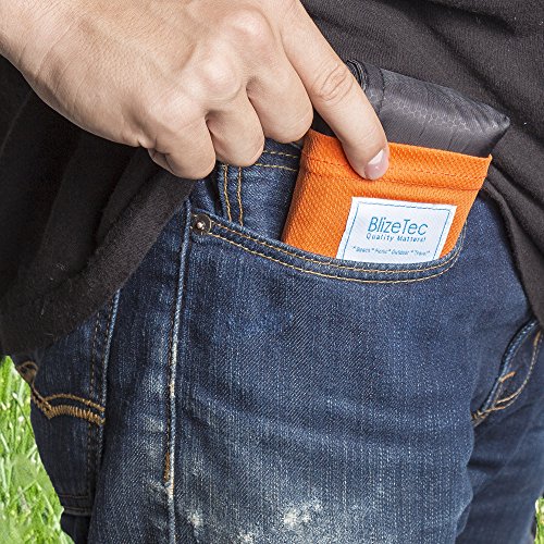 ✅SMALL YET PRACTICAL: BlizeTec pocket blanket (open position) measures 44"(H)*63"(L) and weights only 3.95 oz. Perfect for 1-2 individuals. Max for headcount of 4. Close position measures 4.13"(L)*3.14(H)*1.18"(W) and comes with a nylon carrying bag.