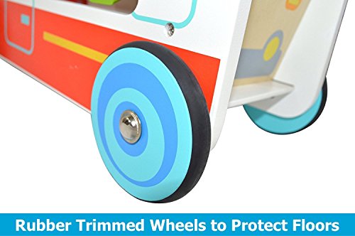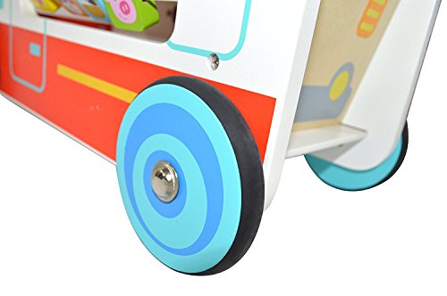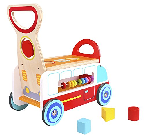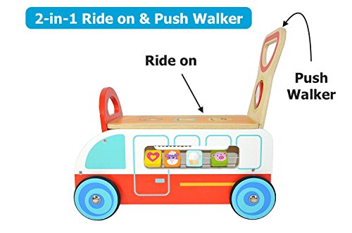 Make your child's early years memorable and fun. With its solid, sturdy construction, this baby ride on is an ideal widget for little ones to advance their grasping and balancing techniques. Complete hands-on ride on experience; perfect for early stages of walking while also developing essential baby mobility skills. Also includes wooden playing blocks, with shapes cut-outs, stimulating colors and natural wood that promotes color recognition, matching, stacking and sorting skills. Push, Pull, and Play! Keep your kids amused and engaged for hours. Made with strong wooden frame, that allows kids a safe and stable platform. This is a great addition to any home, nursery, playroom, schools, waiting rooms, and other child-friendly play area.