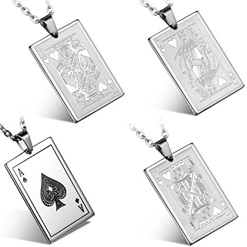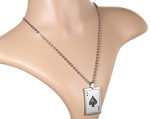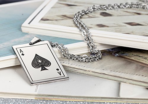 Flongo Herren Kette, Edelstahl Anhanger Halskette Silber Pik A Spades A Poker Karten Punk Rock Herren ,mit 55cm Kette