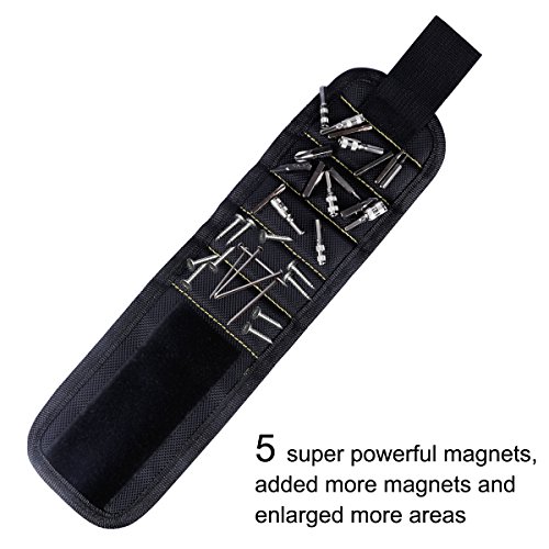 Magnetic Wristband - CrazyLynX Extended Pick-Up Tool with 5 Powerful Strong Magnets for Holding Screws, Nails, Bolts, Drill Bits, Fasteners, More Other Small Tools for Handymen/Carpenters (black)
