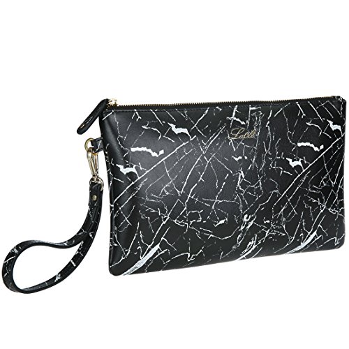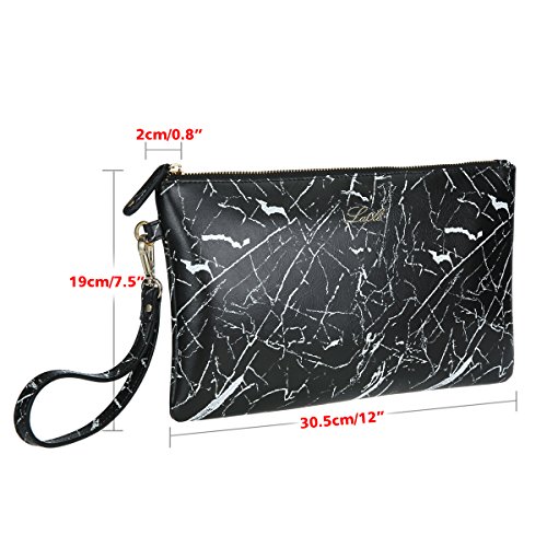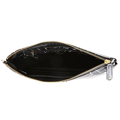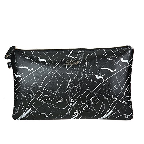 La Cle Bark Embossed PU Leather Flat Envelope Clutch bag(Black )