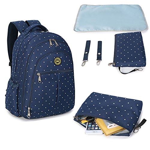 The diaper bag has the most padding You've ever seen on any bag. Extremely comfortable. The very front pocket is deep and the mesh pockets on the sides are strong. The second pocket is great for wipes and bottles And the main compartment has enough pockets to stay organized. It doesn't come with a changing pad,Really nice quality and very cute!Feature