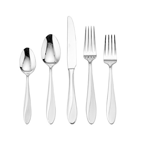 - 20-piece set with service for 4 includes 4 each of dinner forks, salad forks, dinner knives, dinner spoons, and teaspoons