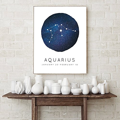 Studio : Kindred Sol Collective Publisher : Kindred Sol Collective Binding : Kitchen Product Description The print shows the zodiac constellation for AQUARIUS set on a beautiful watercolor effect background to reflect the form of the specific star sign. They say the stars under which you were born play a significant role in your life. With our new collection of Zodiac Star Constellation Wall Art you can attractively showcase your unique astrological sign, hang up in your child's room or give as a personal gift to a special someone in your life. With a minimalist design and dreamy imagery, this cool horoscope decor is perfect for any age! This print is the perfect decor addition to a living room, bedroom, as nursery decor, or as an inviting image in a bathroom or entry room. 0