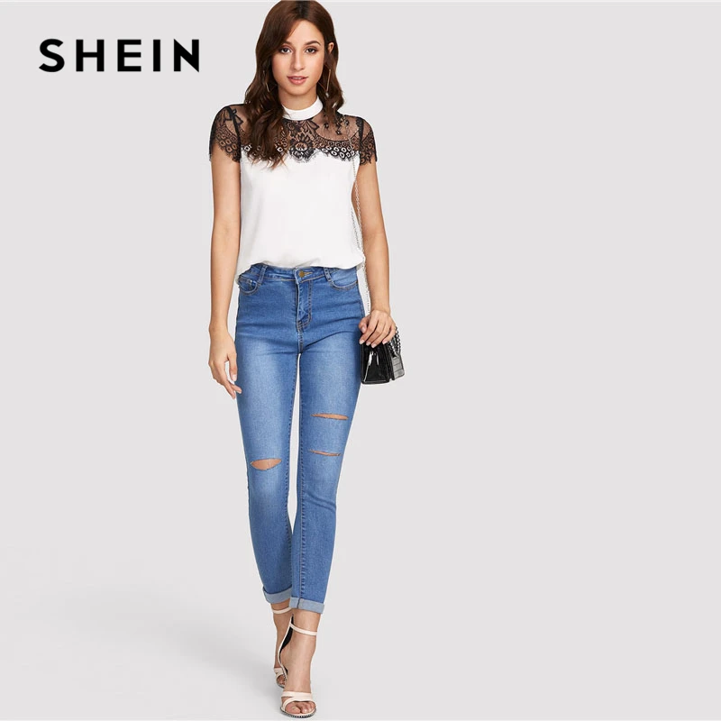 Decoration: Contrast Lace, Sheer, Colorblock, Button