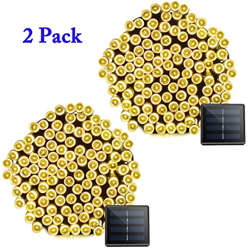 Vmanoo Solar Christmas Lights, 72 Feet 22 Meter 200 LED 8 Modes String Lights, Waterproof Fairy Lights for Outdoor Indoor Wedding Holiday Party, Thanksgiving Day Decorations, 2 Pack (Warm White)