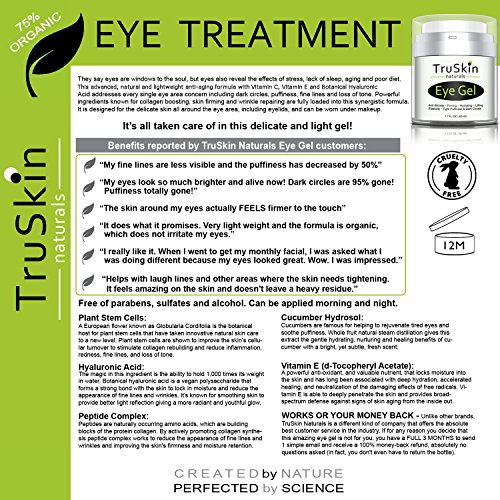 Studio : TruSkin Naturals Publisher : TruSkin Naturals Binding : Misc. Product Description Mildly cooling on contact, this lightweight formula rapidly hydrates, instantly relieving tired skin and reducing signs of fatigue. A concentrated blend of botanical hyaluronic acid, MSM, cucumber hydrosol and vegan silk amino acids gently target puffiness, fine lines, dark circles and skin laxity. 0