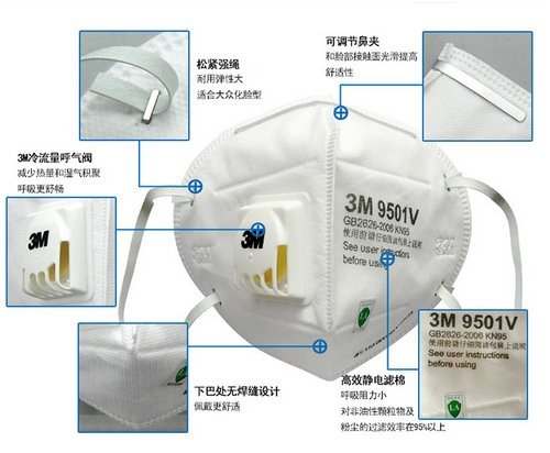 -. Title : Foldable easy carry 3M 9501V KN95 Anti-pollution mask with exhalation valve ,earloop Mask , 10pcs per pack