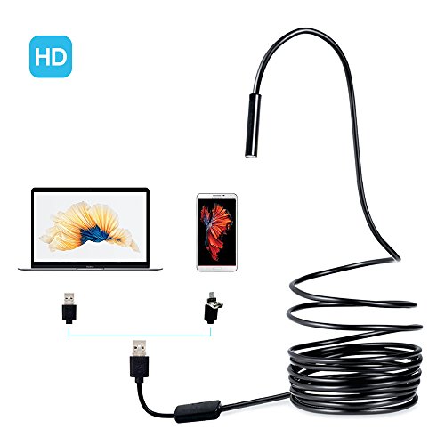 Collen USB Endoscope, 2-in-1 HD CMOS IP67 Waterproof Semi-rigid Borescope Inspection Camera Snake Camera Roll Over Image to Zoom with 6 Adjustable Led Light - 16.4 ft(5 Meter)