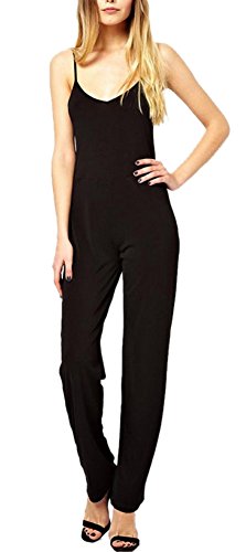 Enlishop Women's Fashion Backless Black Slim Fit Jumpsuit Rompers Long Pants