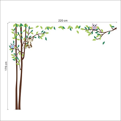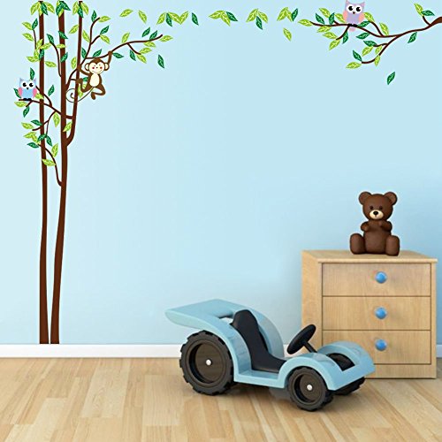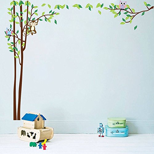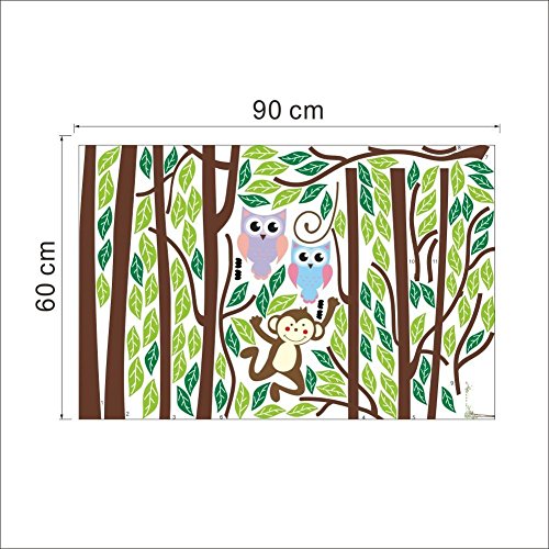 -. Title : BIBITIME Huge Jungle Owl Monkey Wall Decals Kids Bedroom Baby Nursery Stickers Art Room