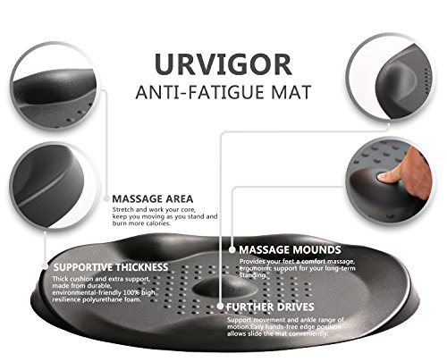 ✔HEALTHY BENEFITS & BURN MORE CALORIES: Calculated terrain features drive you to move more, which means healthier standing at your standing desk. It has features that help keep you moving as you stand and burn more calories to keep fit in daily work and life.The Urvigor anti fatigue mat relieves the burden and pressure from standing all day so you can stand longer without fatigue or aching feet and legs.