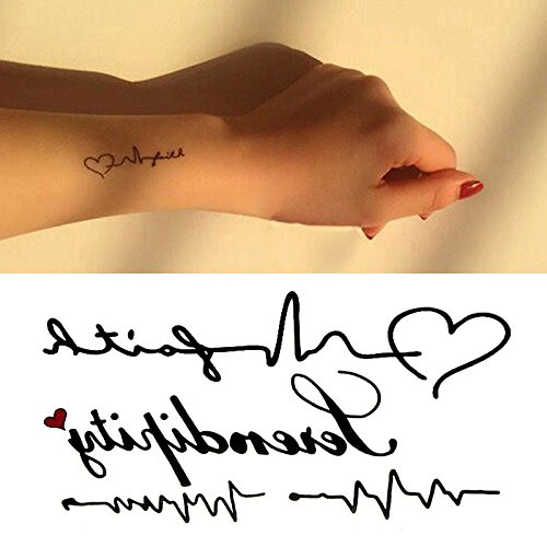 Oottati Small Cute Temporary Tattoo Heartbeat Ecg (2 Sheets)